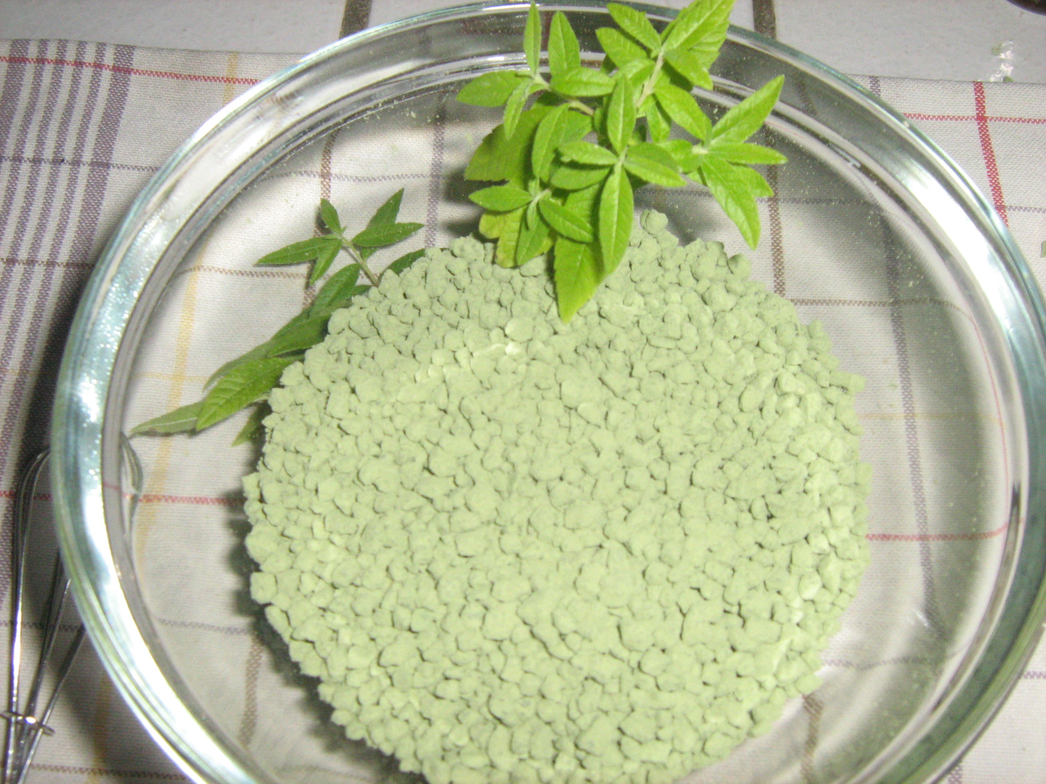 Préparation: verser le sel dans un grand récipient. Ajouter progressivement les algues et l’oxyde, en malaxant bien entre chaque ajout. Le sel doit s’enrober petit à petit et devenir vert pâle.