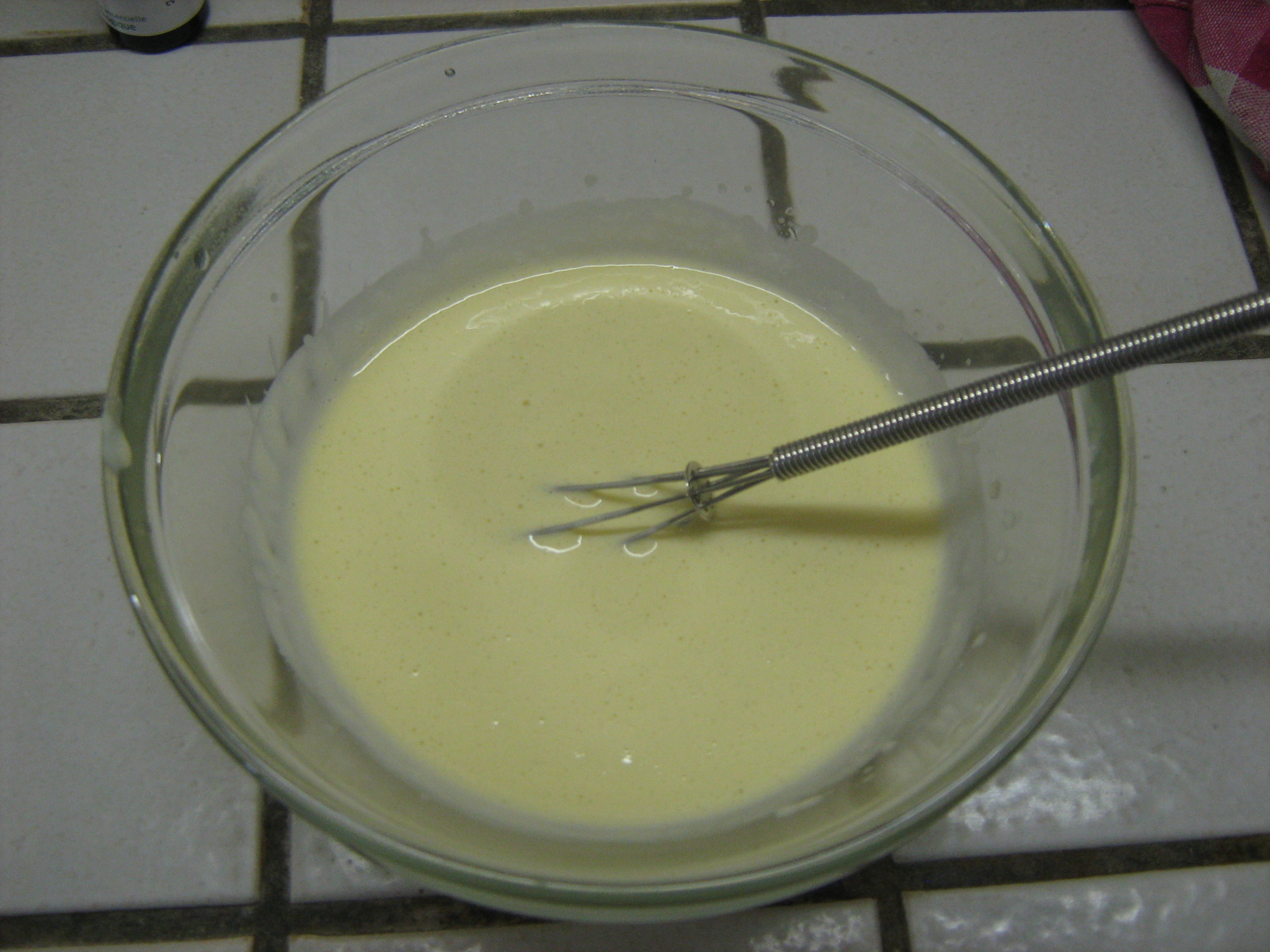 Mettre les HE et le conservateur. Là encore mélangez bien. Mais là le fouet manuel suffit.
