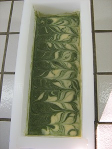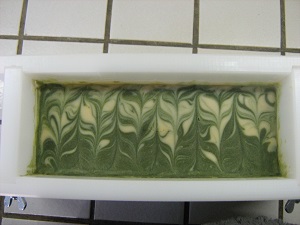 marbrage baguette, marbrage sans moule special, marbrage savon, marbrage spiruline, miel et lait dans la même recette de savon, recette savon lait miel, saponification, saponification à froid, savon au lait et miel, savon spiruline, savons lait de chèvre, savons marbrés