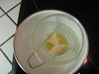 Préparation: je mets en place mon bain-marie (très important, pour ne pas chauffer trop violemment mes ingrédients).