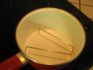 prépa bain-marie  C’est simplement le socle du panier vapeur de ma cocotte minute.. Il supporte mon récipient et l’isole du fond trop chaud.