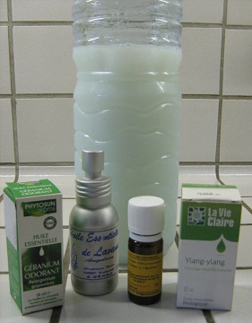 lessive he  Il ne me reste qu’à ajouter mon mélange d’HE pour parfumer ma lessive. Le mien est: 5 gtes de Géranium, 4 gtes d’Ylang-Ylang, 2 « pshit » de Lavande et 2 gtes de Citron dans chaque bouteille.