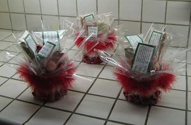 Mes paniers contenaient des « bonbons de bain« , 1 « savon marbré » et 2 « savons bicolores » (1 rond et un rectangle).
