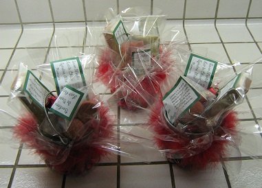Je vous avais parlé des paniers que je préparais, pour offrir aux dames le soir du réveillon. Je vous les montre ?