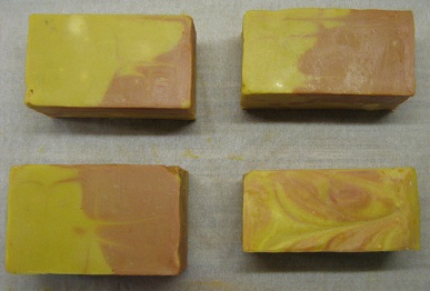 Je suis donc super satisfaite de ma recette ! Qui en plus m’a permis d’utiliser mon baume.. Qui a coloré mes savons en jaune bien vif, preuve qu’il était plus que surdosé en Carotène !!