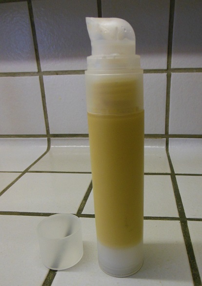 J’ai mis ma crème dans un flacon Airless afin de la protéger au maximum de l’air. Celle-ci sera conservée dans un tiroir de la salle de bains, à l’abris de la lumière. Elle sera ainsi protégée de 2 des 3 ennemis des matières 1ères cosmétiques: l’air et la lumière. La conserver au frigo éviterait aussi la chaleur.. Mais cuisine en bas + sdb en haut, ce n’est pas des plus pratique ! Mon conservateur palliera aux « attaques » de la chaleur..